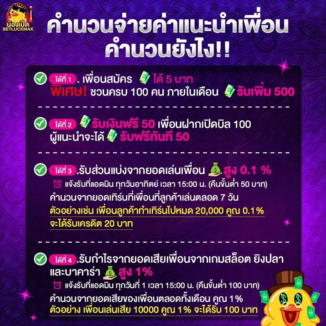 ฝากขั้นต่ำ 100 บาทขึ้นไป ผู้แนะนำรับฟรี 50 บาท