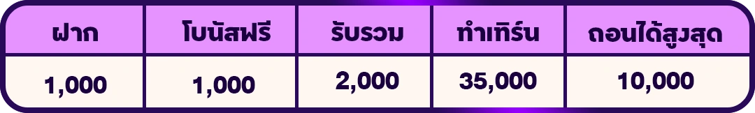 ✅ฝาก 1,000 ฟรี 1,000 ถอนได้สูงสุด 10,000